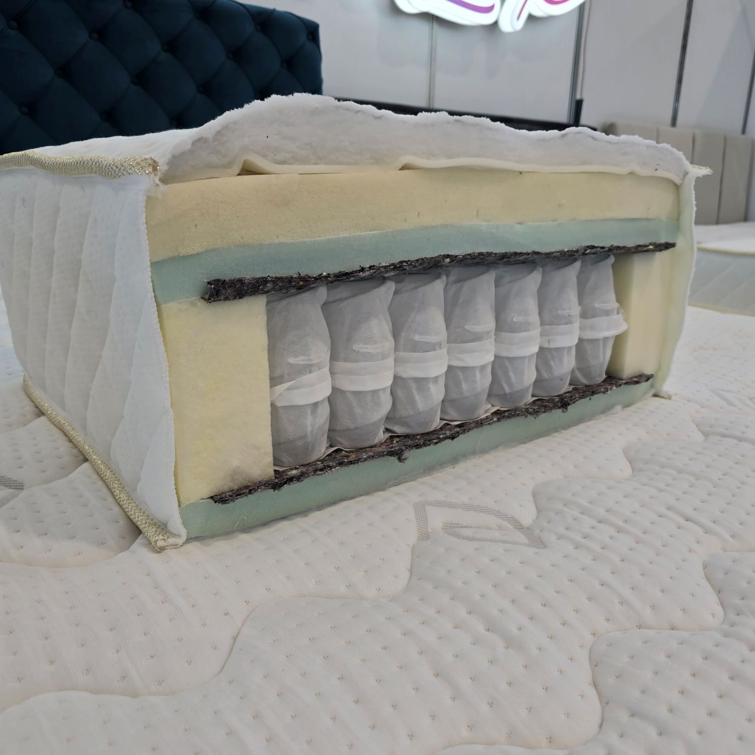 Francuski ležaj Luka osmišljen je za sve koji traže pouzdan komfor i dugotrajnu udobnost. Zahvaljujući dušeku sa džepičastim jezgrom, svaki deo tela dobija adekvatnu podršku, što omogućava miran san bez pritisaka i nepotrebnih buđenja.