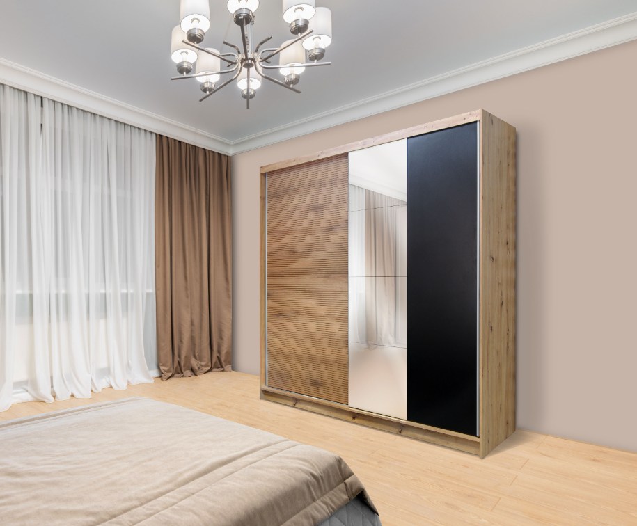 Posebnu eleganciju daje ogledalo na frontu, koje ne samo da vizuelno proširuje prostor, već omogućava da uvek budete spremni i u skladu sa svojim stilom – bez potrebe za dodatnim ogledalom u sobi.