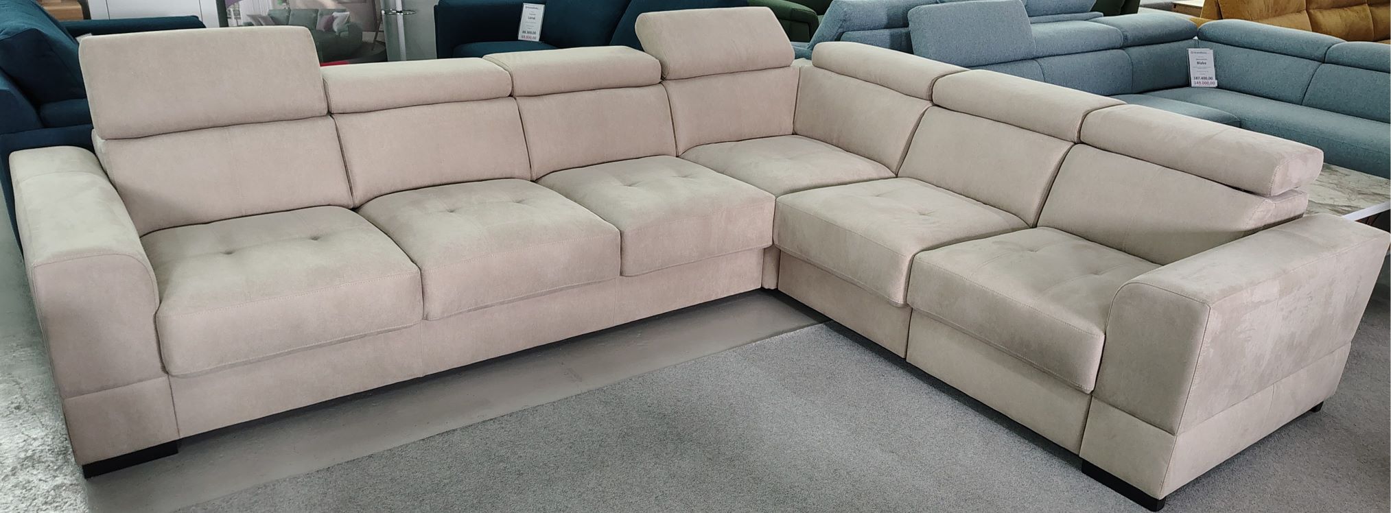 Međutim, prava vrednost ove garniture otkriva se u svakodnevnoj upotrebi. Prostrano sedište omogućava da se cela porodica udobno smesti, a široki segmenti pružaju dovoljno mesta za opuštanje, ležerno izležavanje ili druženje sa gostima. Ovo je garnitura koja poziva da se zadržite – još jedna epizoda, još jedna kafa, još jedan razgovor.